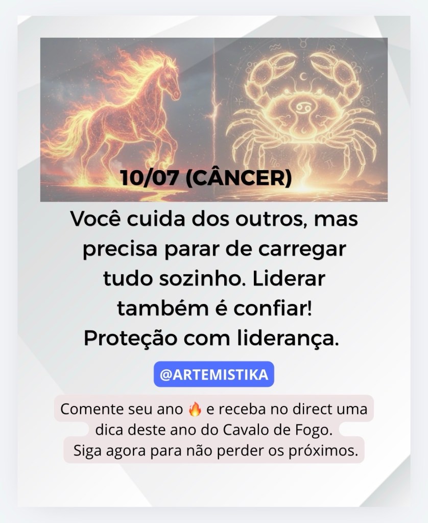 Proteção com liderança. Você cuida dos outros, mas precisa parar de carregar tudo sozinho. Liderar também é confiar.